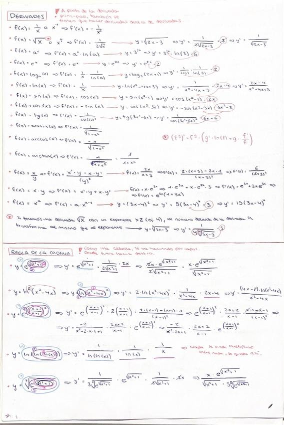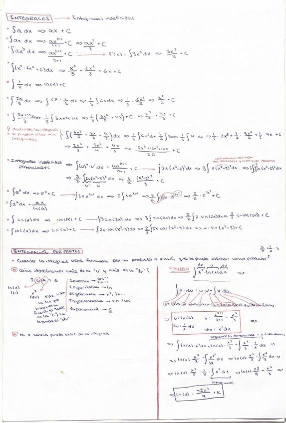 todas las derivadas (regla de la cadena explicada), integrales, integración por partes, integrales definidas de funciones a trozos, integrales con valor absoluto, cálculo de áreas