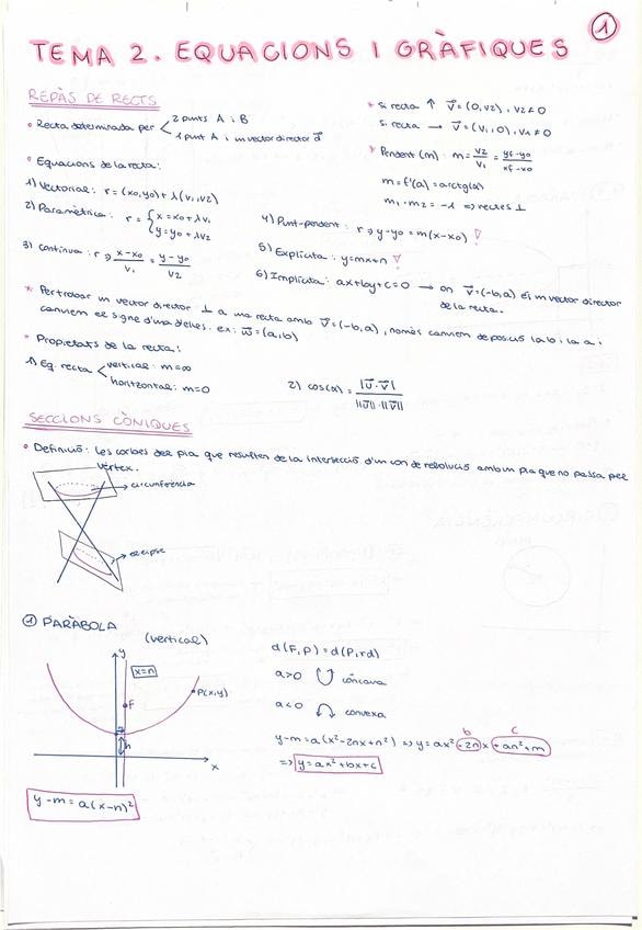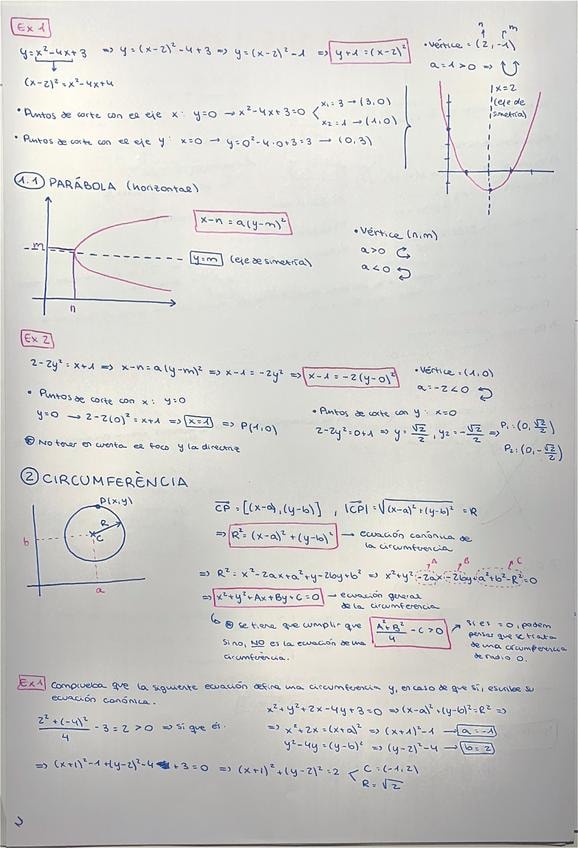 Repaso de rectas, secciones cónicas (parábola, circunferencia, elipse, hipérbola).