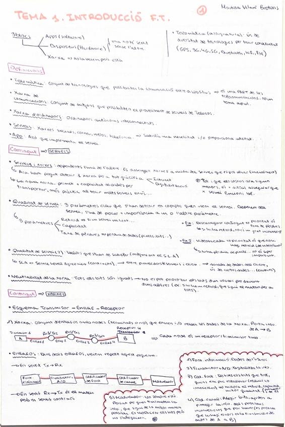 Definicions, serveis, xarxes, esquema transmissor-enllaç-receptor, esquema enllaços, amb modulació i sense modulació, funcions basiques d'una xarxa, topologies, xarxes de difusió, punt a punt, commutació...