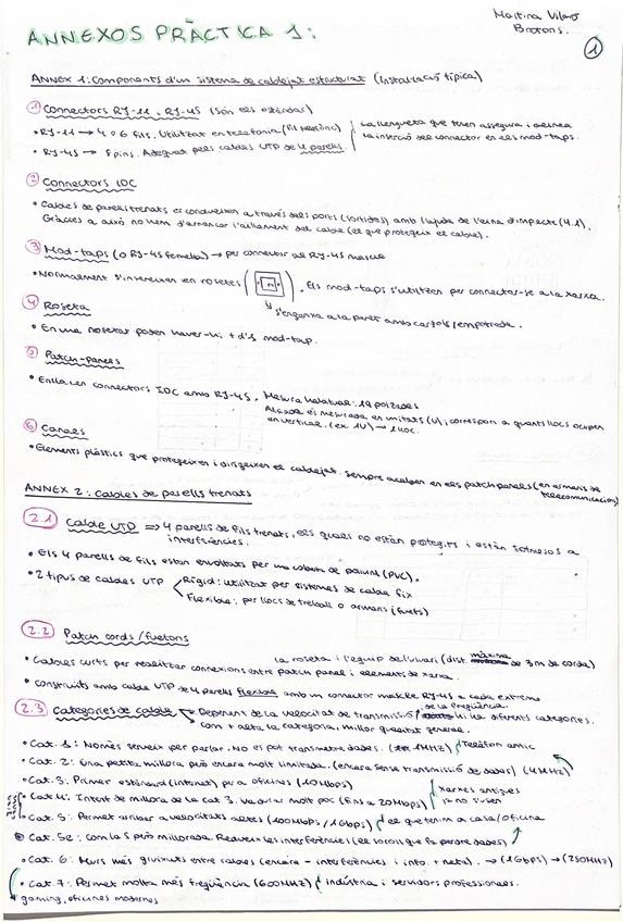 Tots els components d'un sistema de cablejat estructurat explicat. Material, per qué serveix, constucció de connectors i cables, eines i equips utilitzats, línies de transmissió, equacions importants, pràctica de laboratori resolta.
