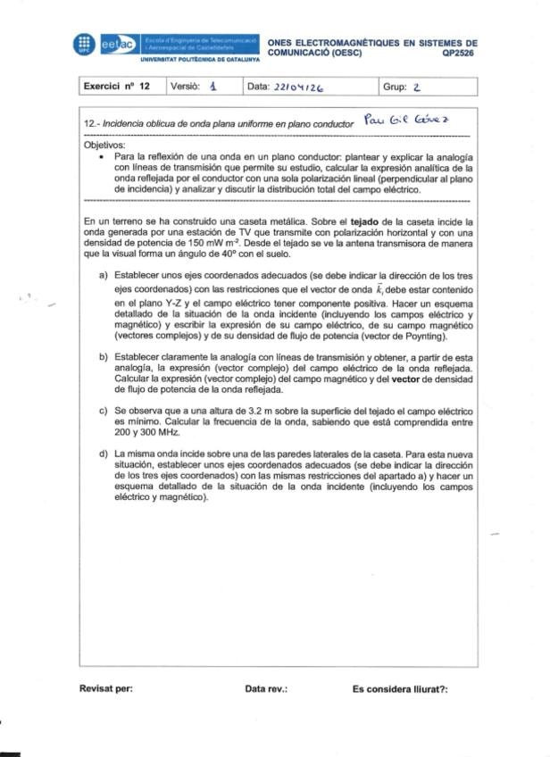 He publicado nuevos apuntes de 2º Ones Electromagnètiques en els Sistemes de Comunicació: Entrega12.pdf