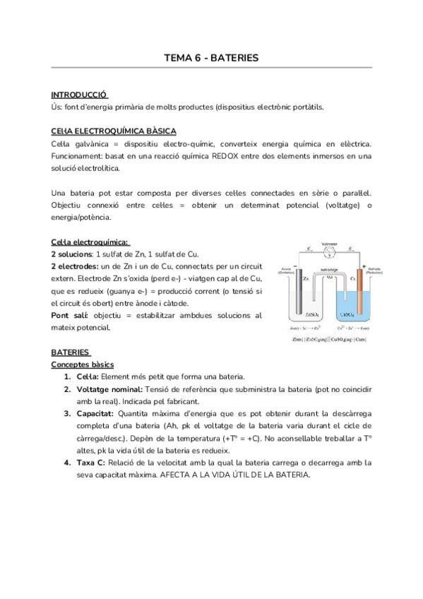 Tema bateries resum. Important les últimes pàgines de tipus de bateries, les primeres son conceptes introductoris.