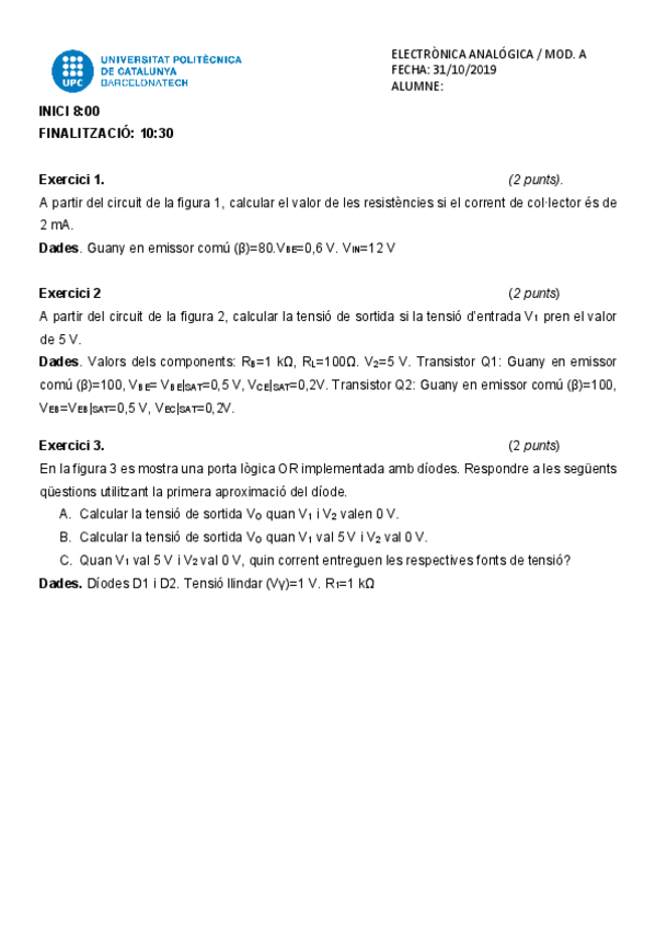 He publicado nuevos examenes de 3º Electrónica Analógica: Examenparcial2019.pdf