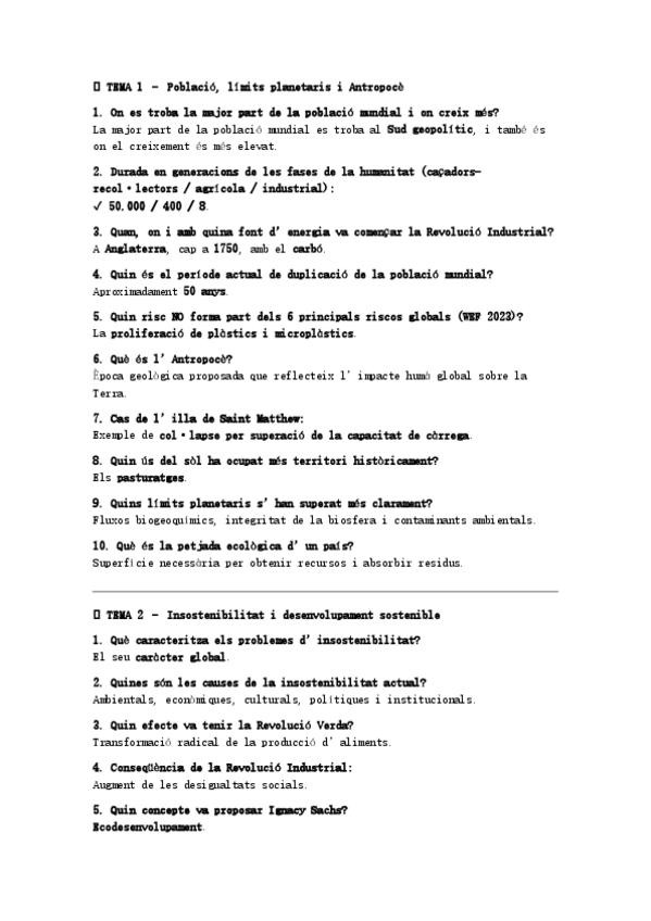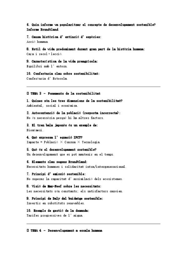 Qüestionaris de cada tema amb només la pregunta i la resposta correcta.