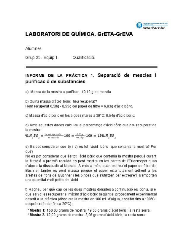 He publicado nuevos practicas de 1º Química: Informes Laboratori