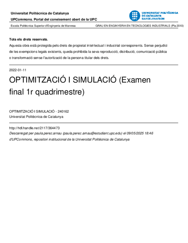 He publicado nuevos examenes de 3º Optimització i Simulació: Finalesoys-1.pdf