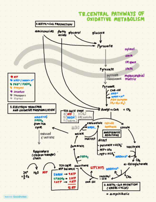 This mindmap does not contain all the information entirely, but gives a general idea of the pathway, substrates, enzymes and locations of the topic of oxidative metabolism