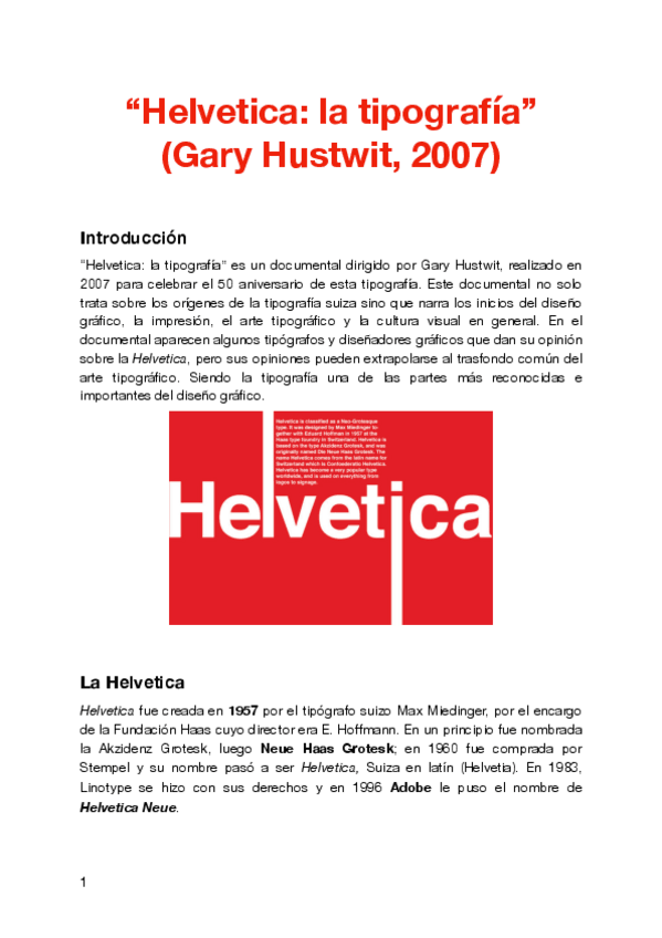 Trabajo sobre el documental "Helvetica: la tipografía" de Gary Hustwit, 2007