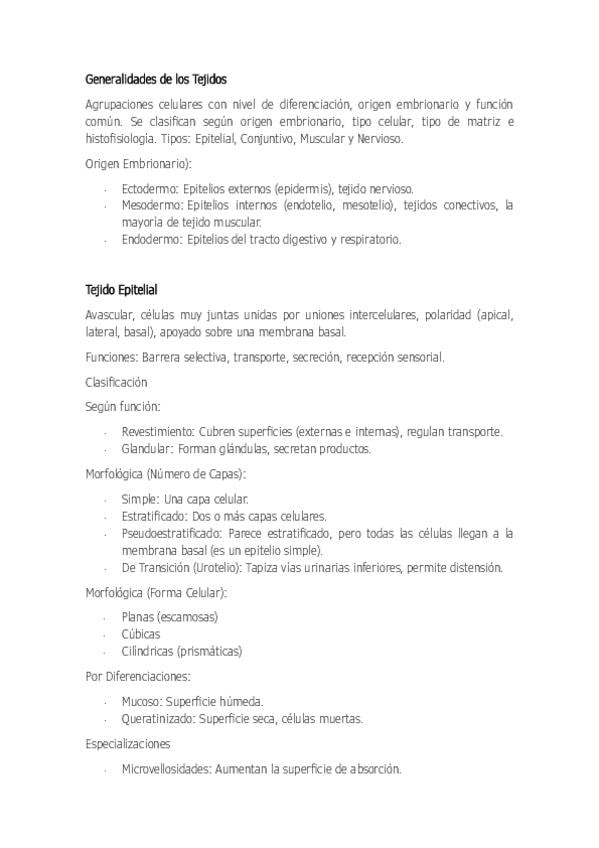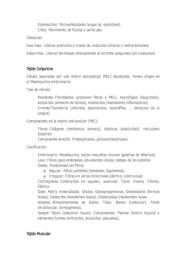 Esquema sobre el tema 3 de anatomía. Histología