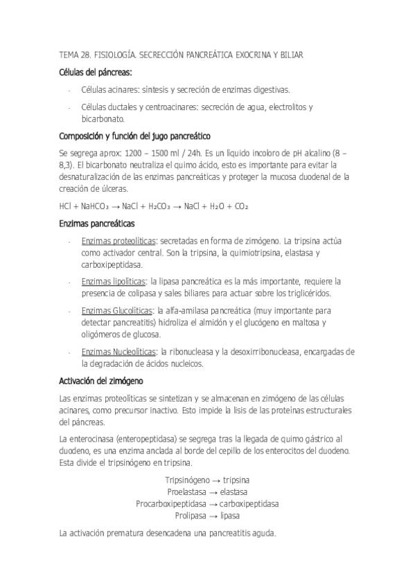 Tema 28 de fisiología, sobre la secreción pancreática exocrina y biliar.