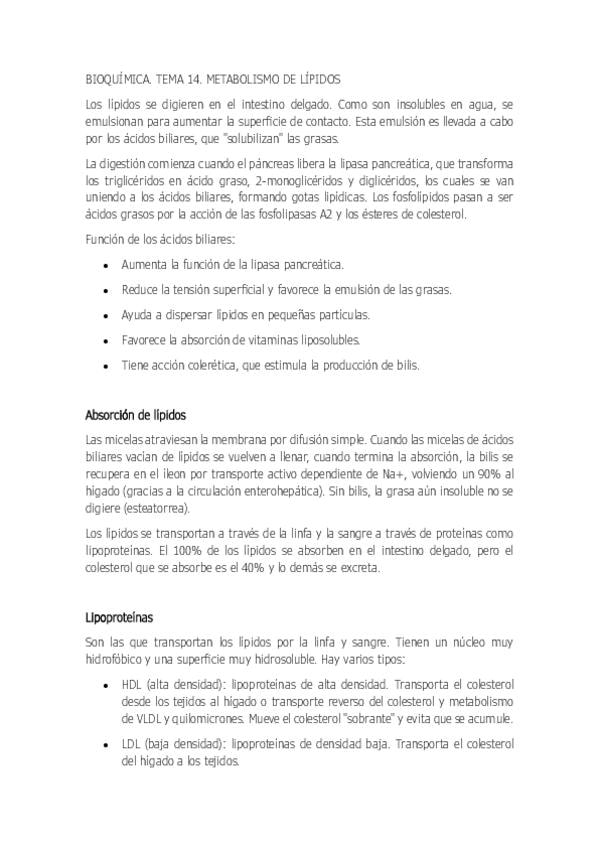 APUNTES DE BIOQUIMICA. TEMA 14, EL METABOLISMO DE LOS LÍPIDOS