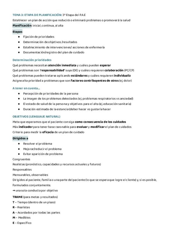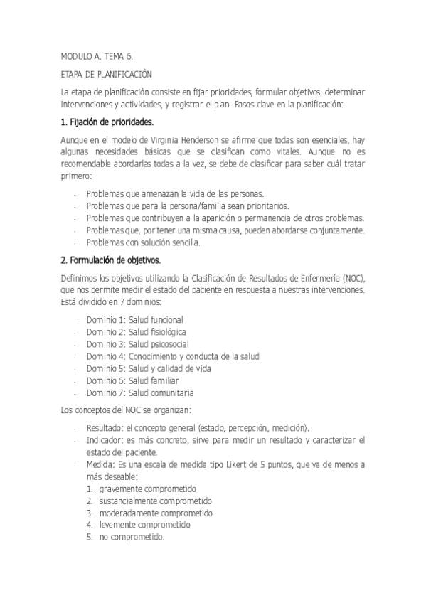 tema 6 del módulo A de cuidados básicos de la enfermería. sobre la etapa de la planificación.
