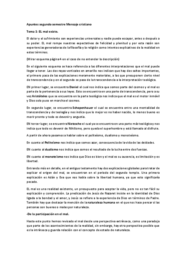 Apuntes sobre la asignatura de mensaje cristiano