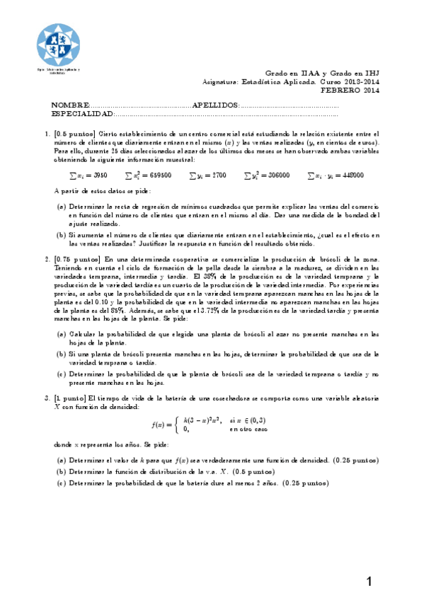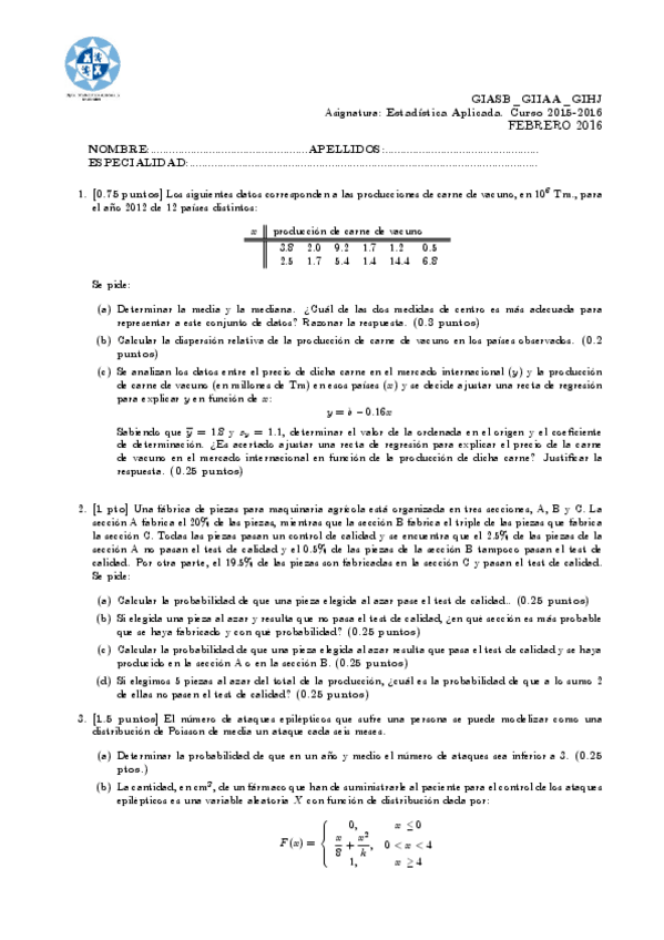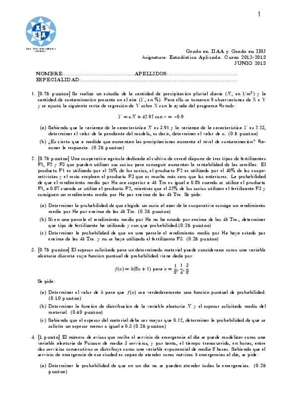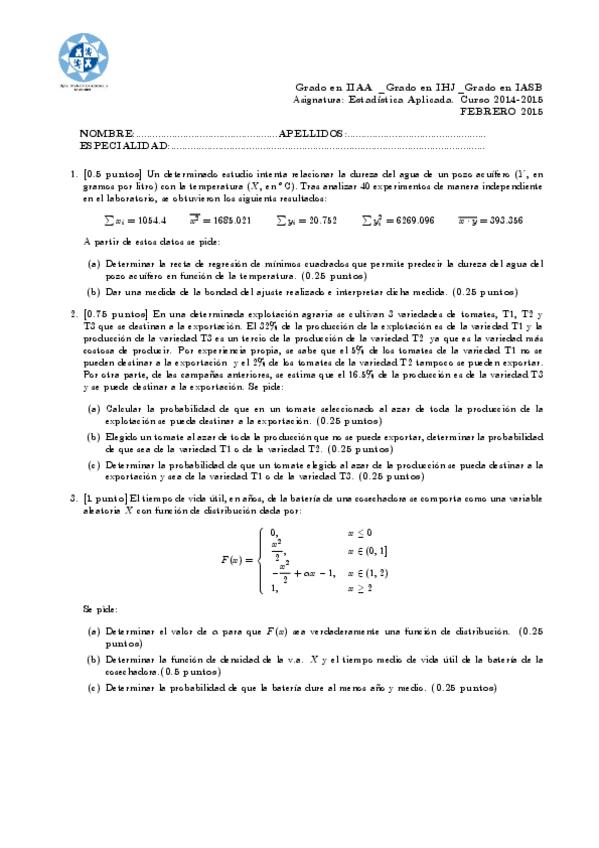 He publicado nuevos examenes de 2º Estadística Aplicada: Exámenes
