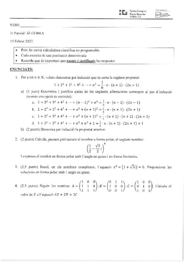 He publicado nuevos examenes de 1º Álgebra: 2n-Parcial-1P-Algebra-2023.pdf