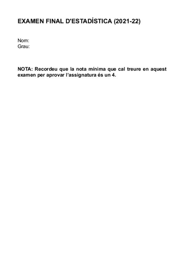 He publicado nuevos examenes de 2º Estadística: 2Examen20212022Solucio.pdf