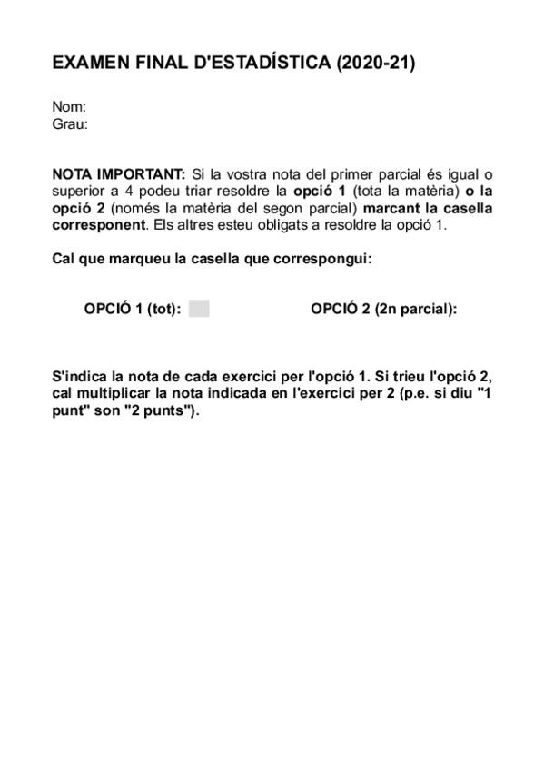 He publicado nuevos examenes de 2º Estadística: 4Examen20202021Solucio.pdf