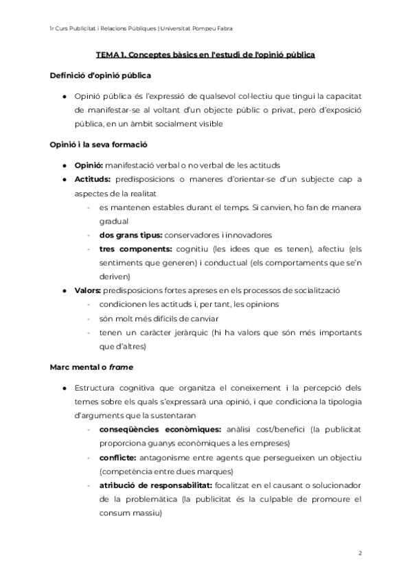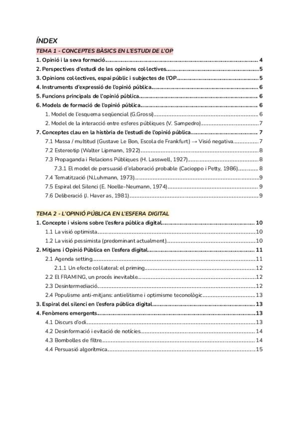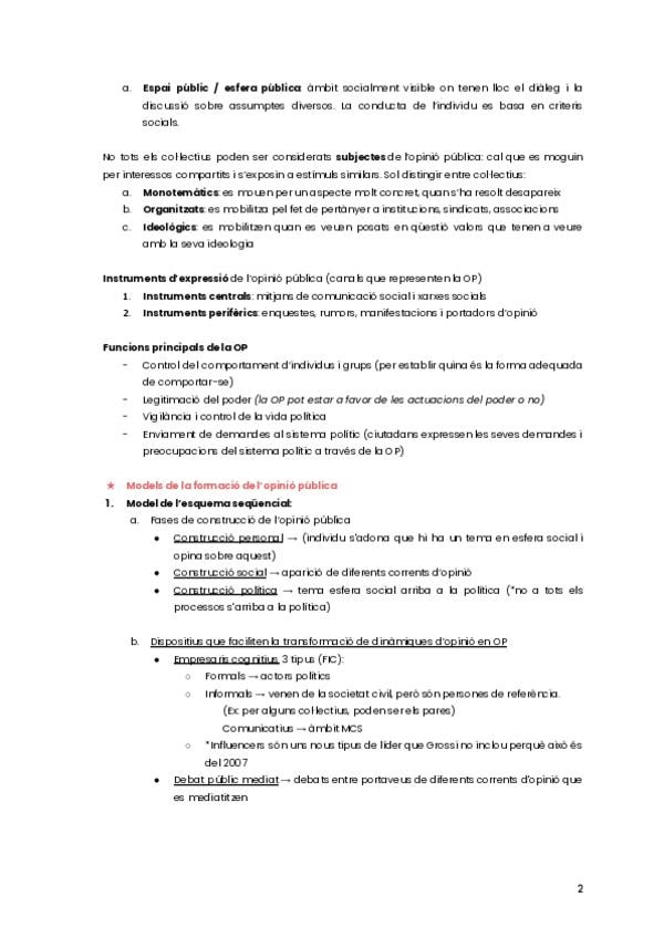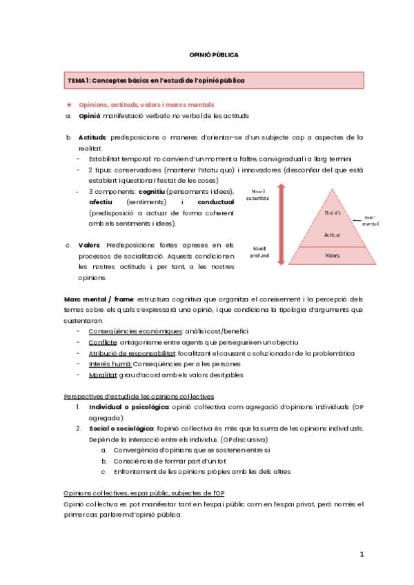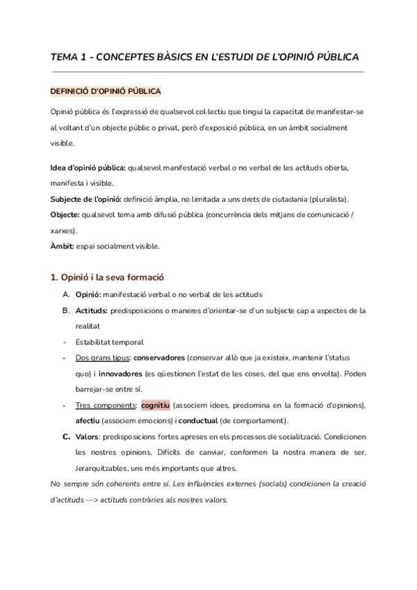 Apunts complets del primer tema d'opinió pública, dividits en apartats.