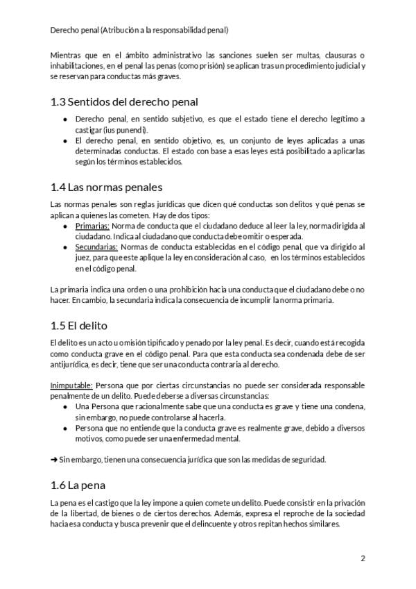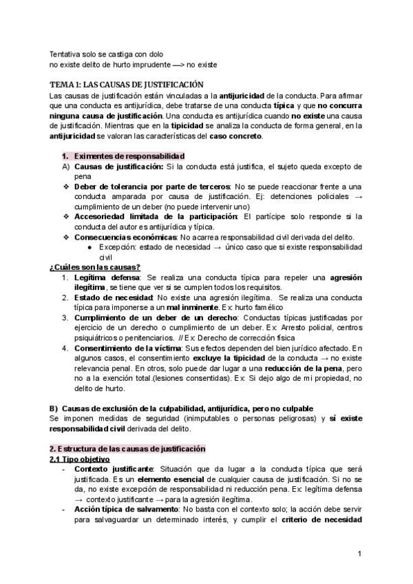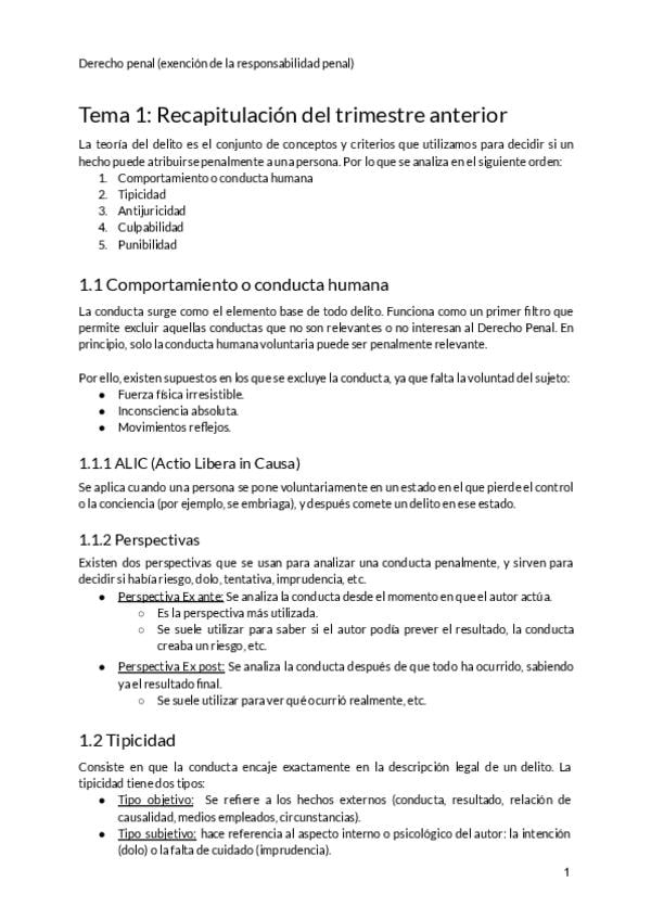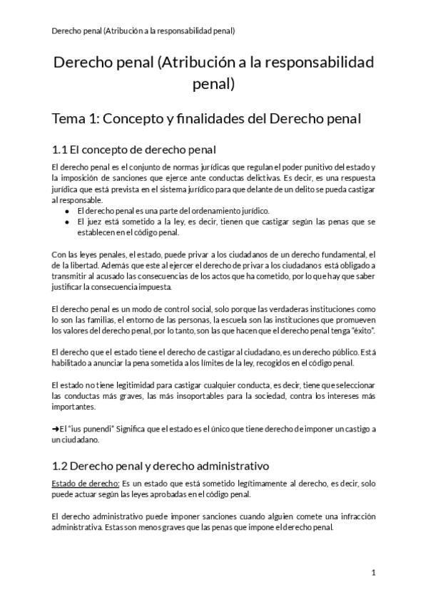 Todos los temas de la asignatura de primer trimestre de Derecho Penal (Atribución a la responsabilidad penal)
