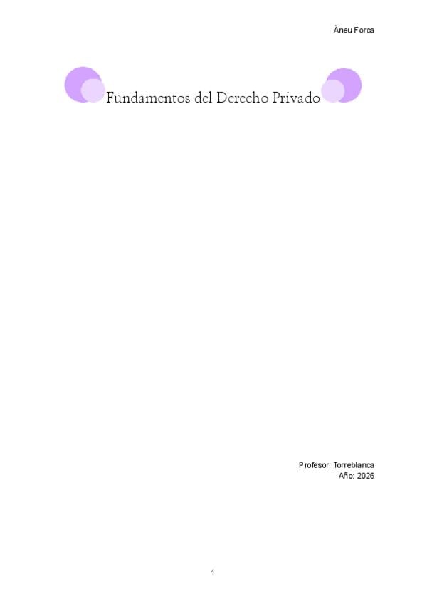 Os dejo el tema 1 de la asignatura Fundamentos del Derecho Privado. En este documento encontrareis esquemas, resúmenes y una explicación comprensible. Profesor Torreblanca Año 2026 Pompeu Fabra
