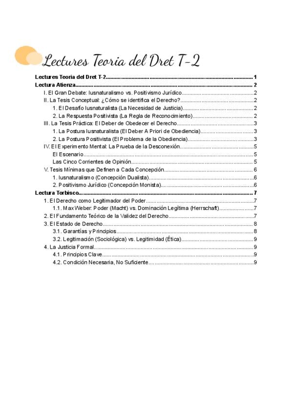 Os dejo un resumen de todas las lecturas que corresponden al tema 2 de la asignatura Teoria del Dret (Atienza y Torbisco). En este documento encontrareis esquemas, resúmenes y una explicación comprensible. Profesor Josep Lluís Martí Año 2026