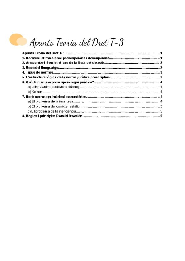 Os dejo los apuntes del tema 3 de la asignatura Teoria del Dret, en este documento complemento las lecturas (Zorrilla y Dworkin) con la explicación del profesor en clase. En este documento encontrareis esquemas, resúmenes y una explicación comprensible. P
