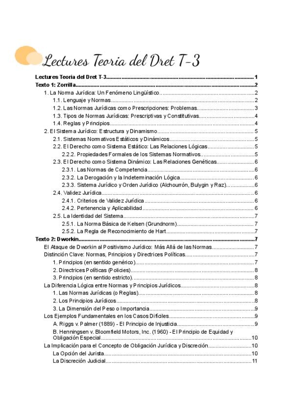 Os dejo un resumen de todas las lecturas que corresponden al tema 3 de la asignatura Teoria del Dret (Zorrilla y Dworkin). En este documento encontrareis esquemas, resúmenes y una explicación comprensible. Profesor Josep Lluís Martí Año 2026