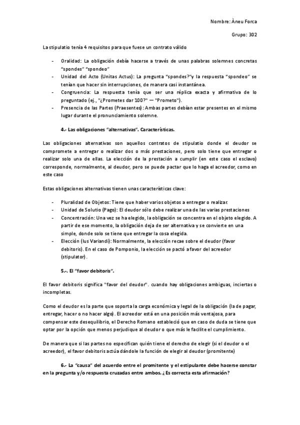 Os dejo el trabajo evaluable del 1r seminario de Derecho romano, resuelto con los comentarios y aclaraciones de la profesora. Año:2026 Profesora: Caballer