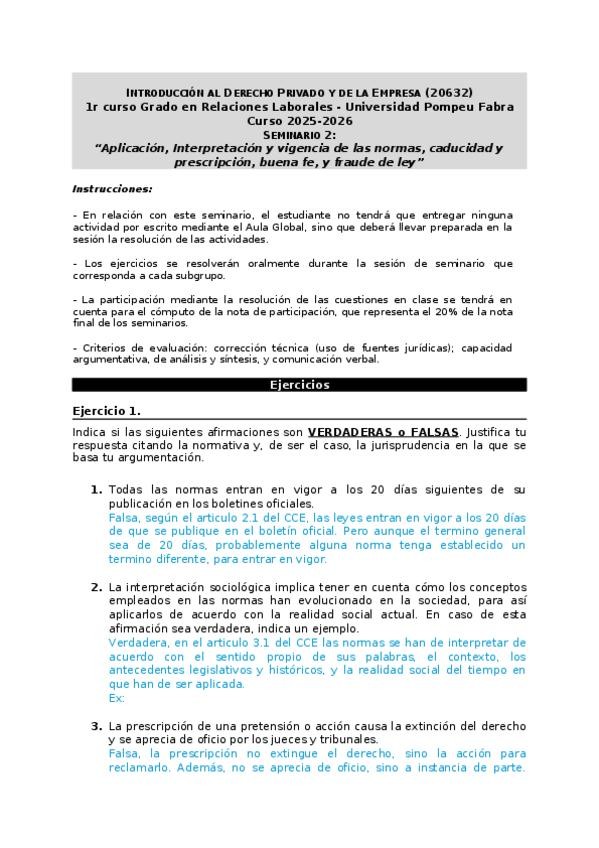 He publicado nuevos ejercicios de 1º Introducció al Dret Privat i de l'Empresa I: Seminari 2.pdf