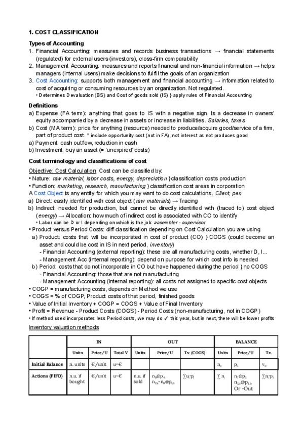 Resumen, Summary Cost Accounting. resumen detallado con todo lo necesario para el examen