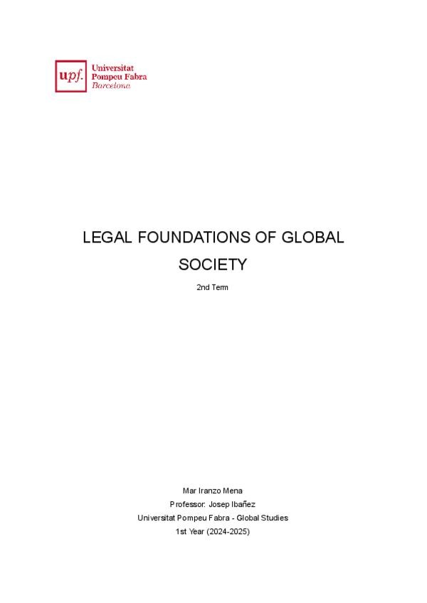 Apuntes claros y organizados sobre Legal Foundations of Global Society, pensados para estudiar y comprender todos los temas de la asignatura.