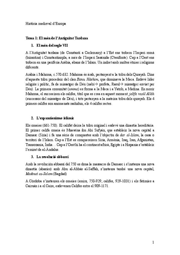 Apuntes completos de la asignatura optativa de 3o/4o Història Medieval d'Europa