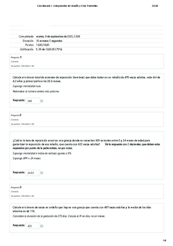 Cuestionario 1. Composición del rebaño y Ciclo Productivo
