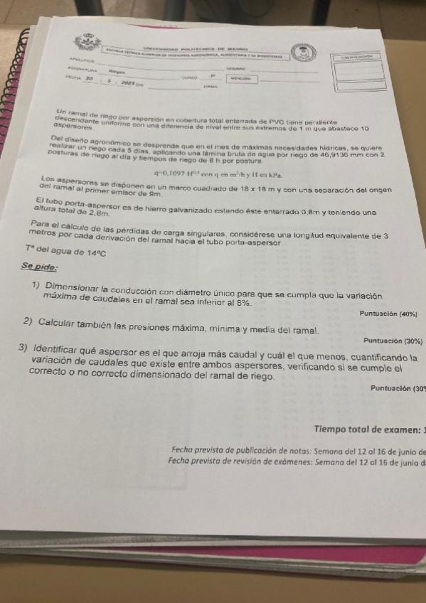 He publicado nuevos examenes de 3º Sistemas y Tecnología del Riego y Drenaje: 2o-Parcial.pdf