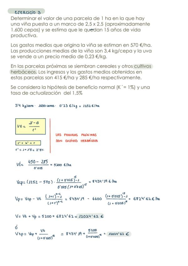 Ejercicio 7 del tema 8 de Valoración de Empresas Agrarias hecho en clase con Silverio