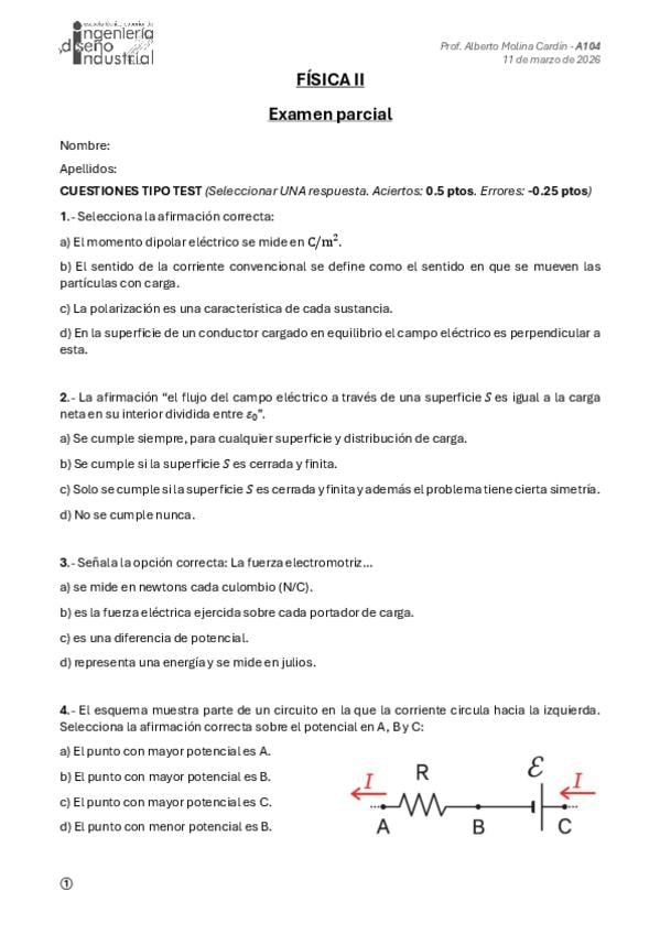 EXAMEN PARCIAL A-104 FISICA I CON SOLUCIONES 2025-26