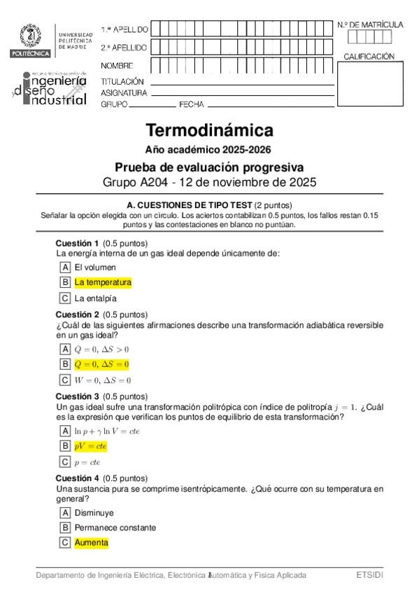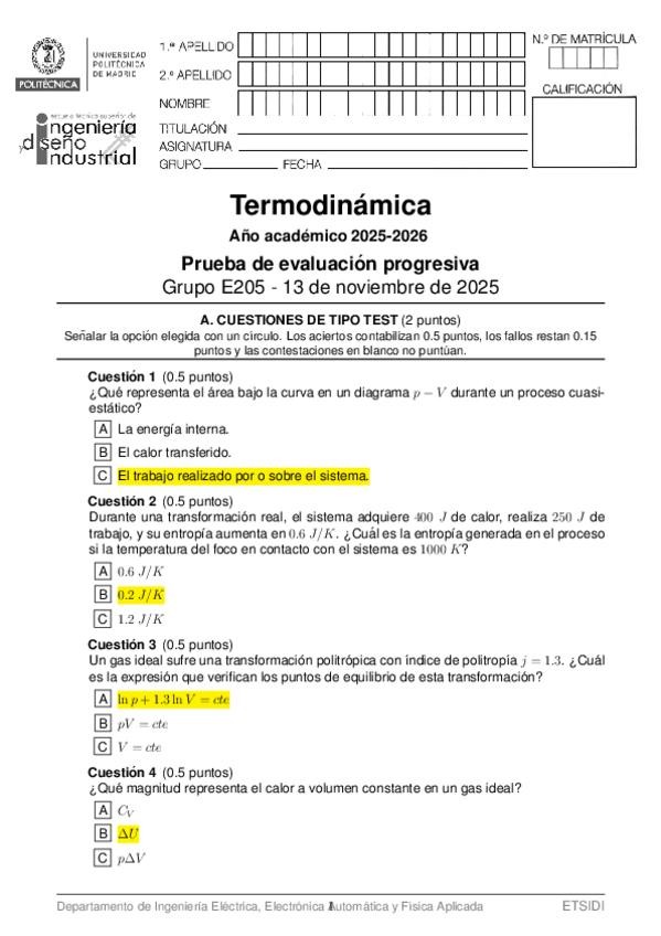 He publicado nuevos examenes de 2º Termodinámica: PARCIAL-E205-2025-TERMODINAMICA.pdf