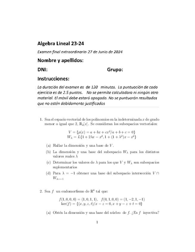 He publicado nuevos examenes de 1º Álgebra Lineal: ALGEBRA-JUNIO-2024.pdf
