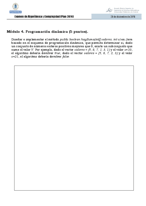 He publicado nuevos ejercicios de 2º Algorítmica y Complejidad: Ejercicios Programación Dinámica