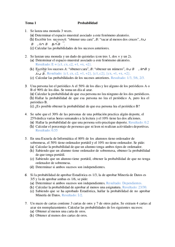 He publicado nuevos ejercicios de 2º Probabilidad y Estadística: Ejercicios