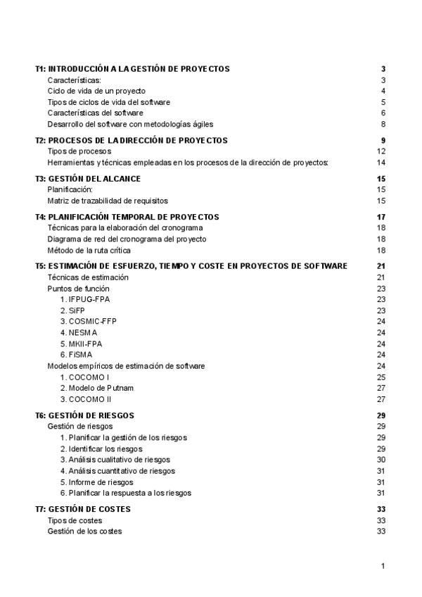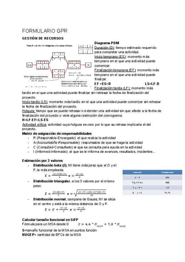 Resumen de todo el temario de Gestión de Proyectos y del riesgo. Subiré además un formulario resumen