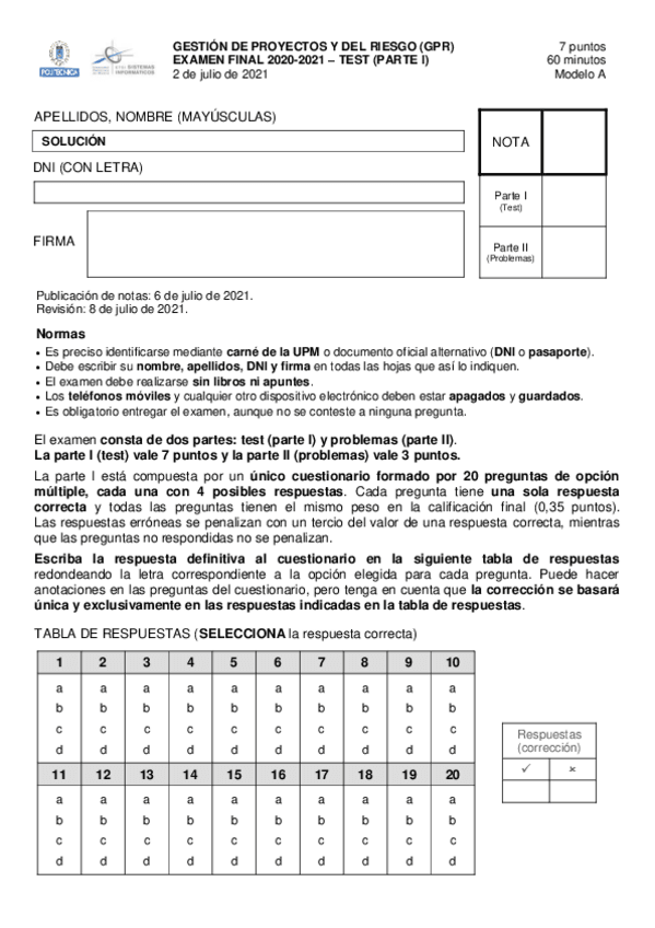 He publicado nuevos examenes de 4º Gestión de Proyectos y del Riesgo: GPRJulio2021.pdf