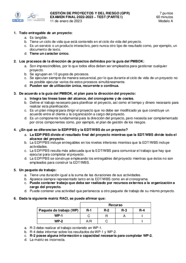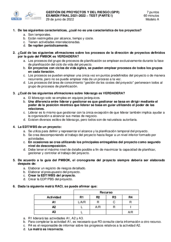 He publicado nuevos examenes de 4º Gestión de Proyectos y del Riesgo: GPRJulio2022.pdf