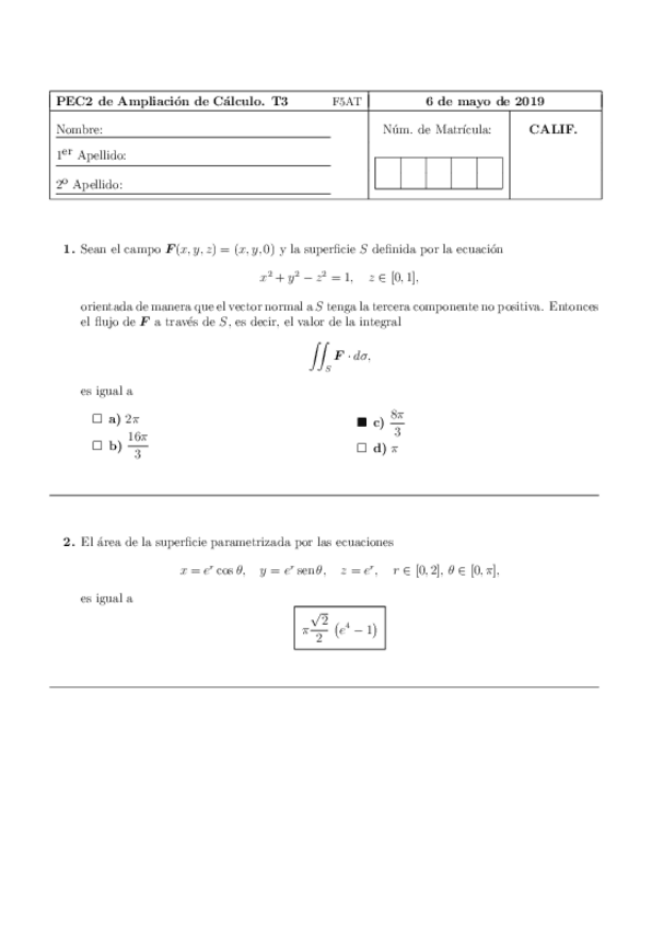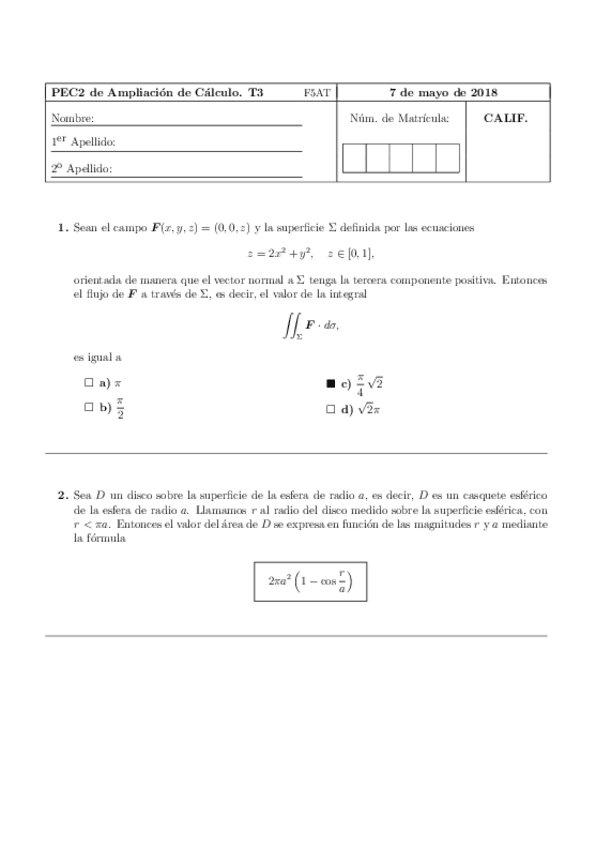 He publicado nuevos examenes de 2º Ampliación de Cálculo: PECS 2 Con Solución