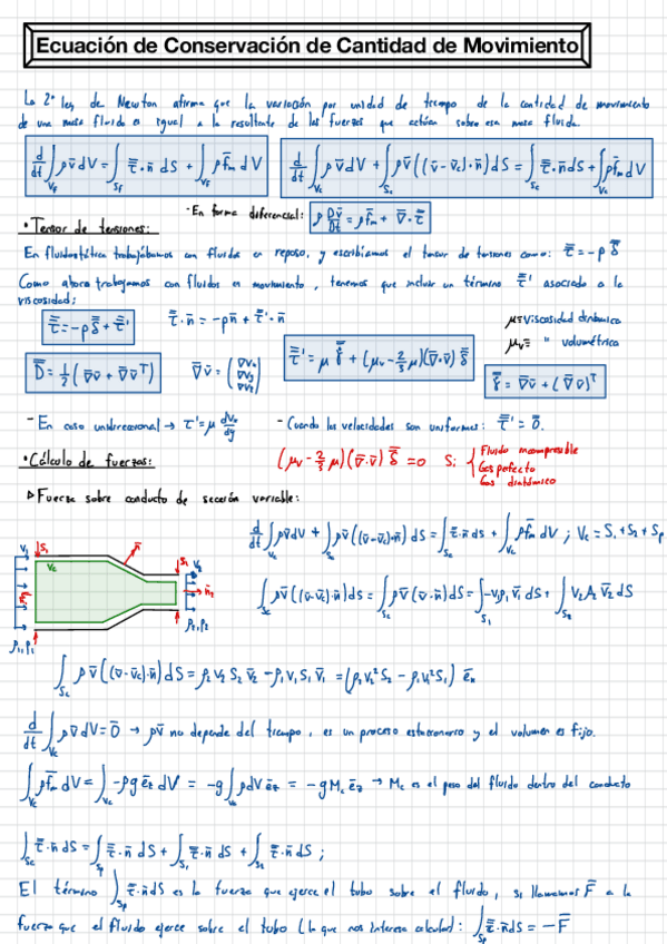 Tema de ecuacion de conservación de la cantidad de movimiento completo. Con ejercicios explicados paso a paso