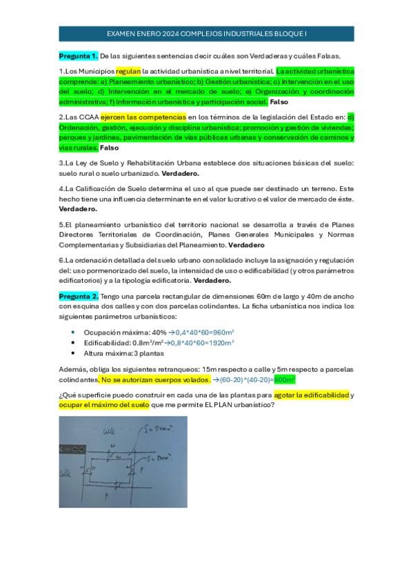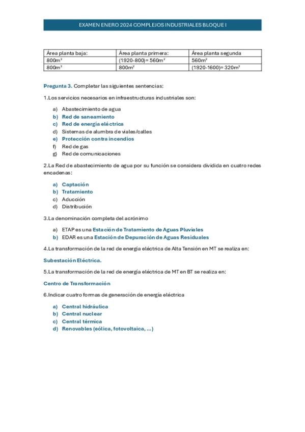 Examen con soluciones de la primera parte de Complejos Industriales