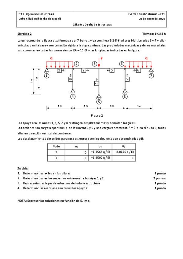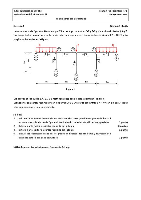 He publicado nuevos examenes de 1º Cálculo y Diseño de Estructuras: Enero 2026 - Cálculo Matricial