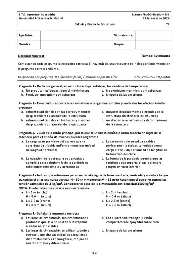 He publicado nuevos examenes de 1º Cálculo y Diseño de Estructuras: Enero 2026 - Parte Teoría (equivalente PEC 1)