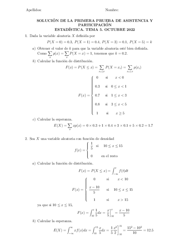 He publicado nuevos examenes de 2º Estadística: Exámenes de asistencia