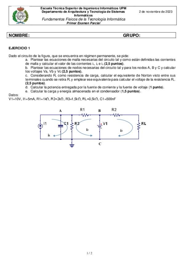 He publicado nuevos examenes de 1º Fundamentos Físicos y Tecnológicos de la Informática: EXAMENES RESUELTOS PRIMER PARCIAL